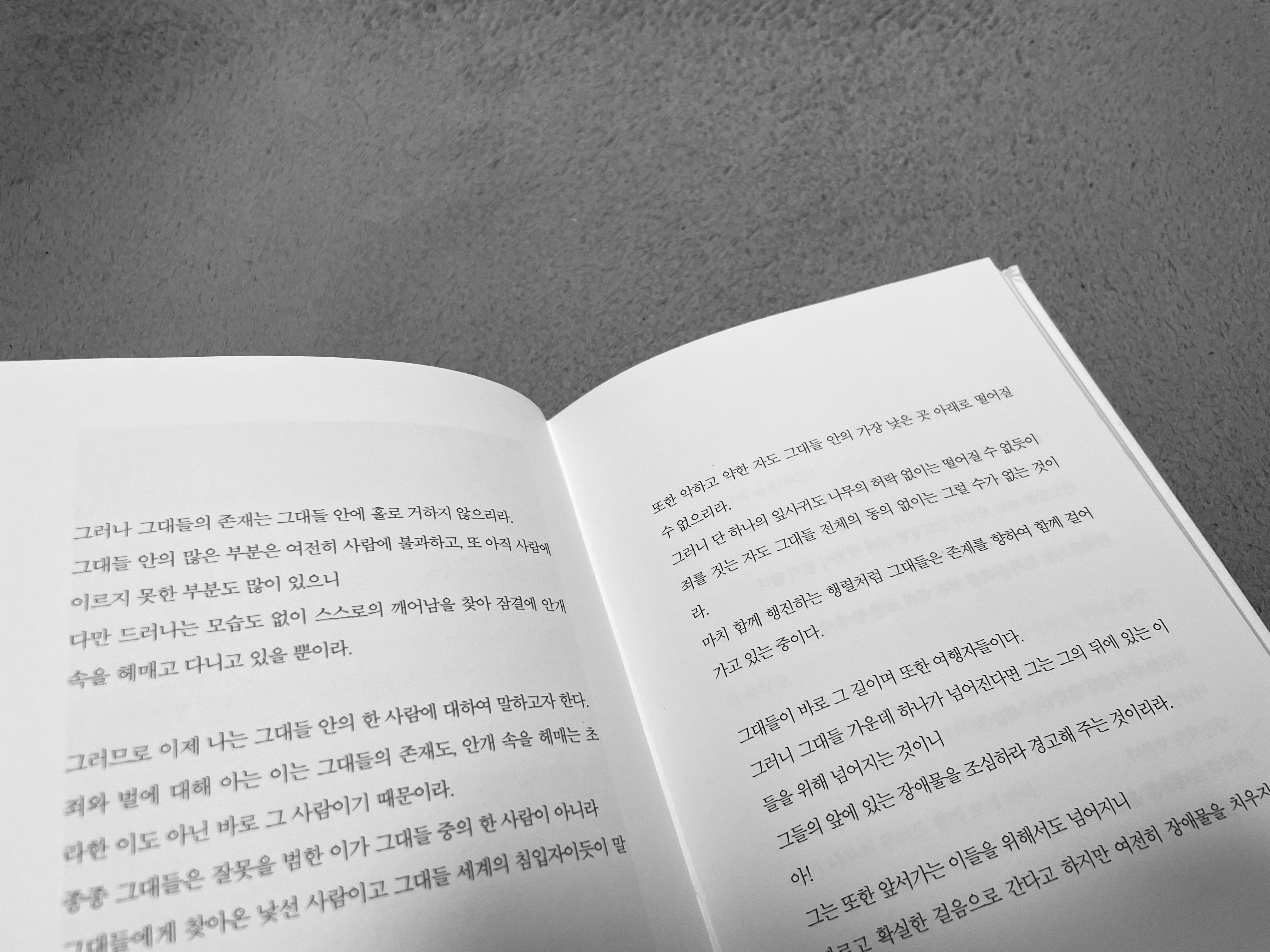 관심을 기울이고 있는 것들이 더 눈에 띄는 것처럼 책을 읽다 보면 내가 고민하고 원하는 것에 가까운 문장들이 더 눈에 들어온다. 그 문장들은 대부분 스스로를 믿고 새로운 곳으로 나아가라는 이야기들이다. 문장들은 지금의 주위를 찬찬히 둘러보게 하고, 어서 새로운 곳을 향해 나아가라고 말한다.