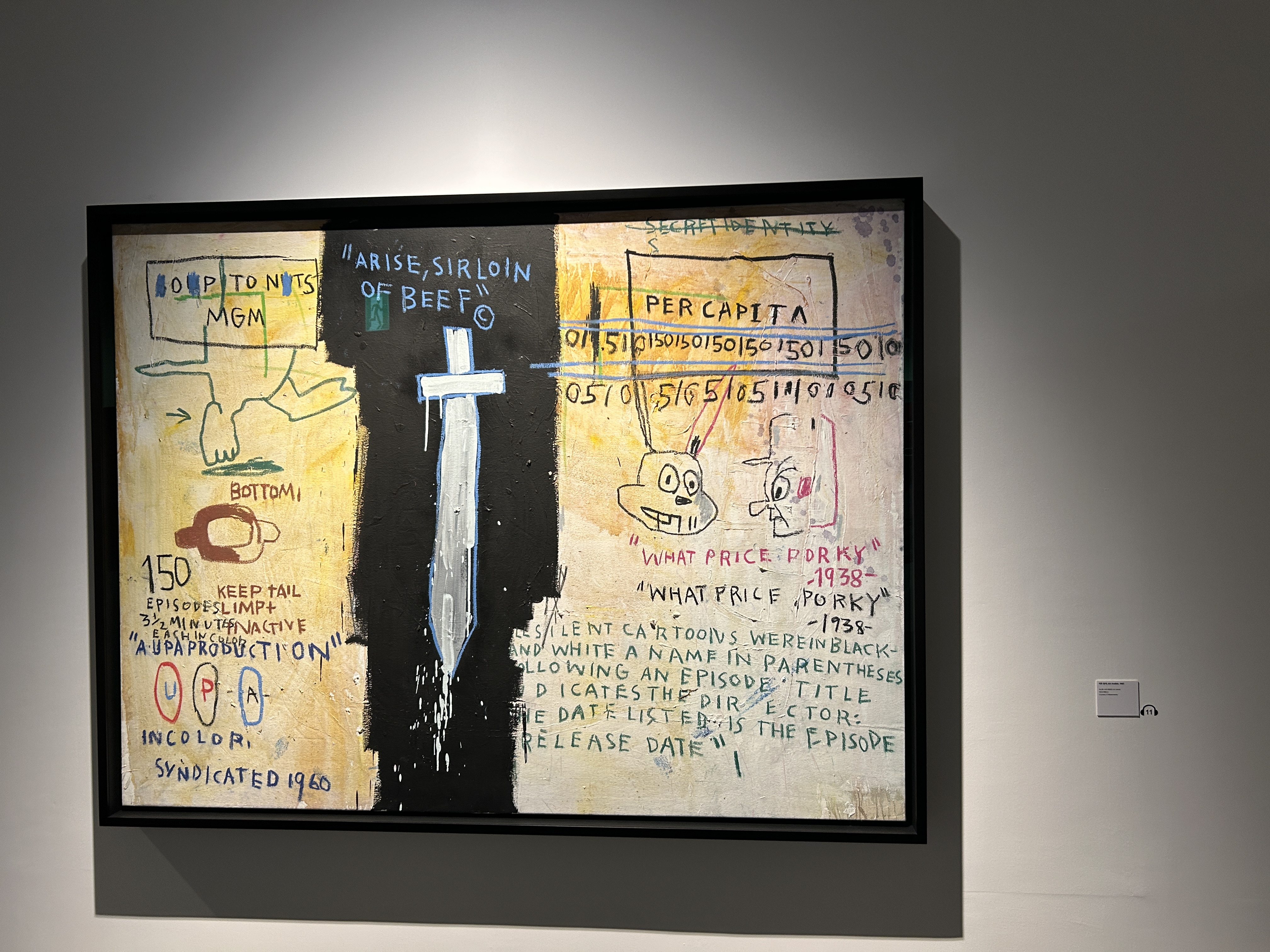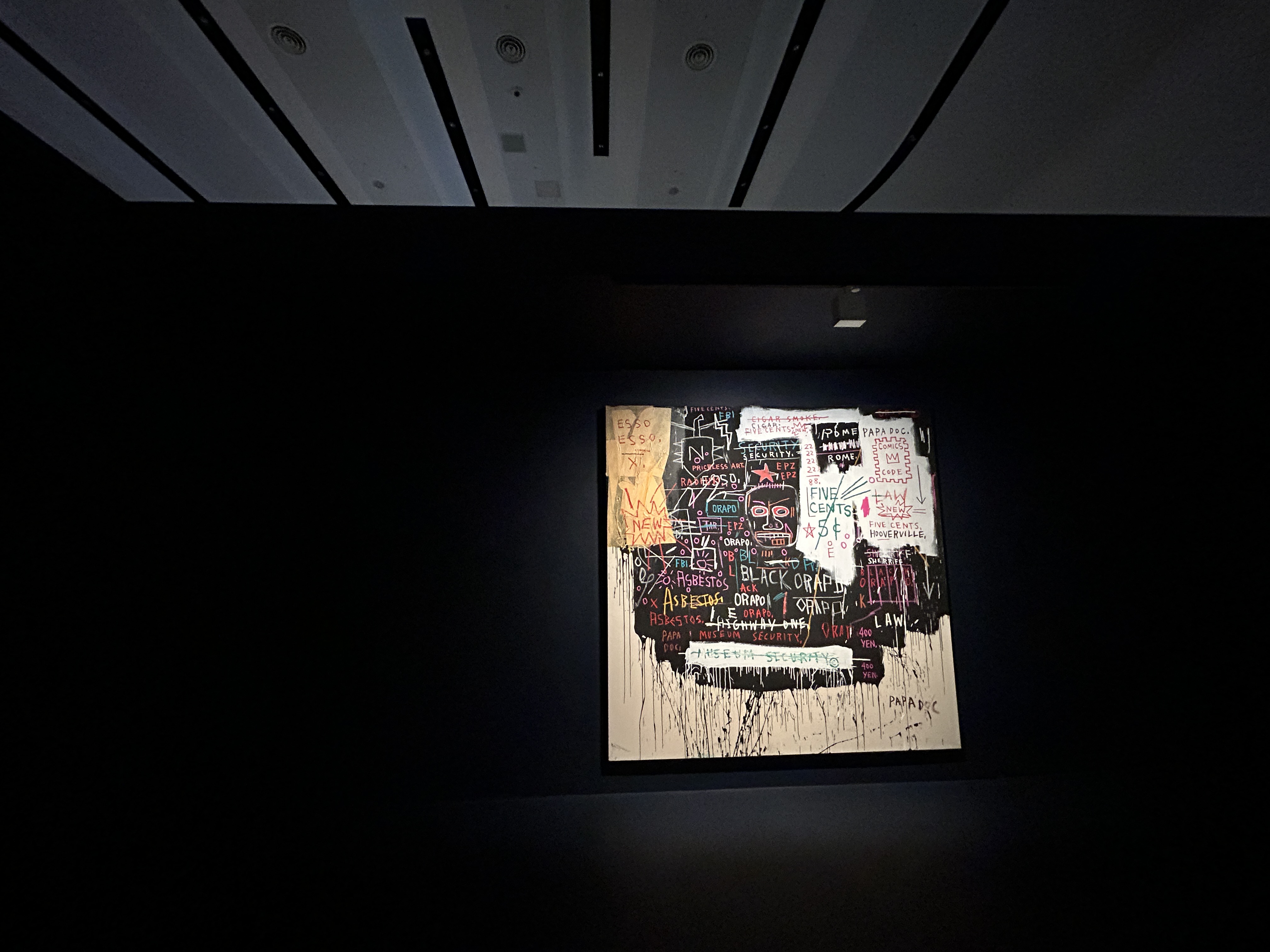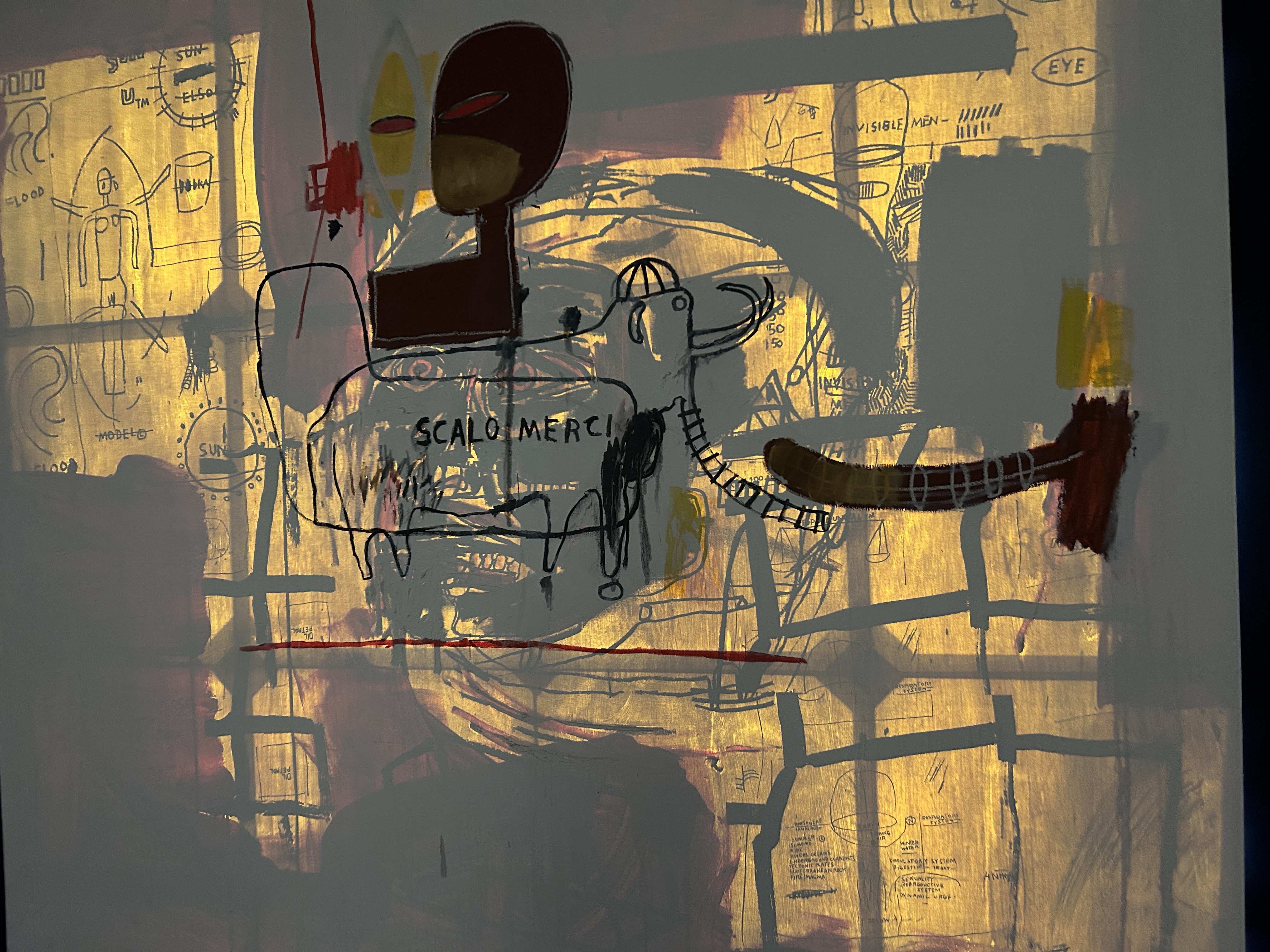 SECTION 9 숨겨진 상징 HIDDEN SIGNS, 바스키아이 작품은 반복되는 기호와 은유, 숨겨진 이미지들을 통해 삶의 복잡성과 모순을 반영하며, 관람자로 하여금 그 이면의 메시지를 이해하도록 유도하는 다층적인 시각 언어를 구성한다.