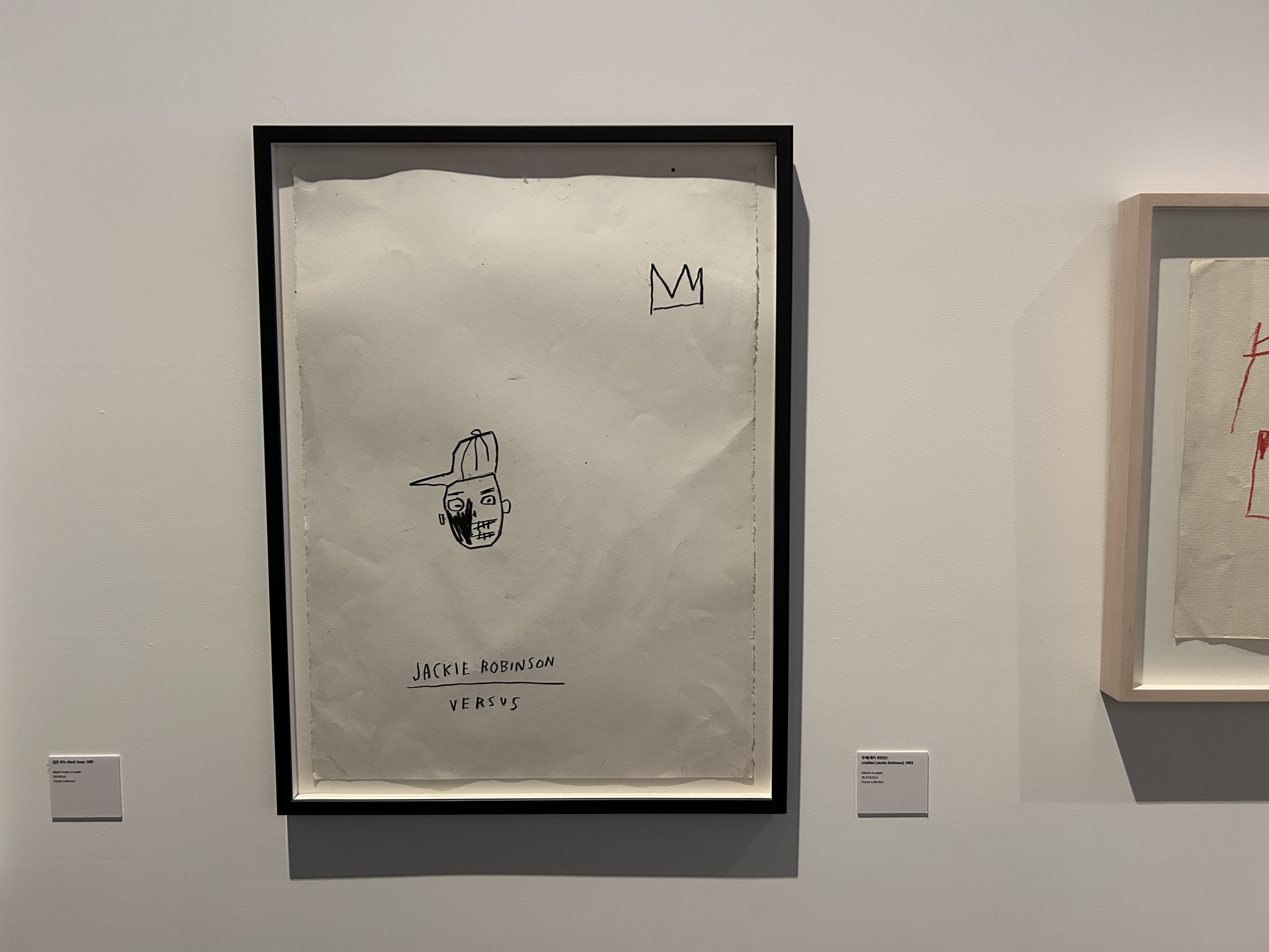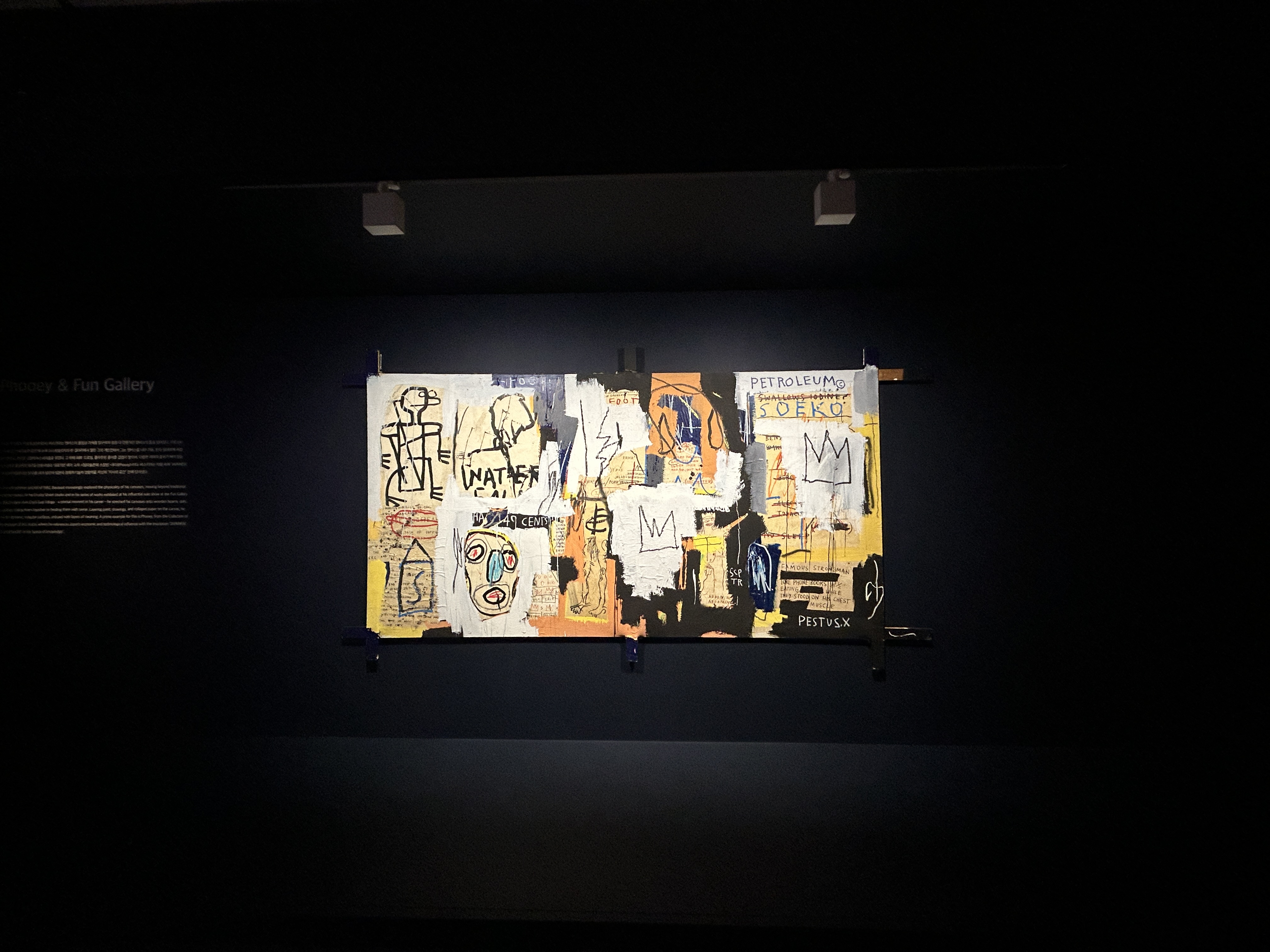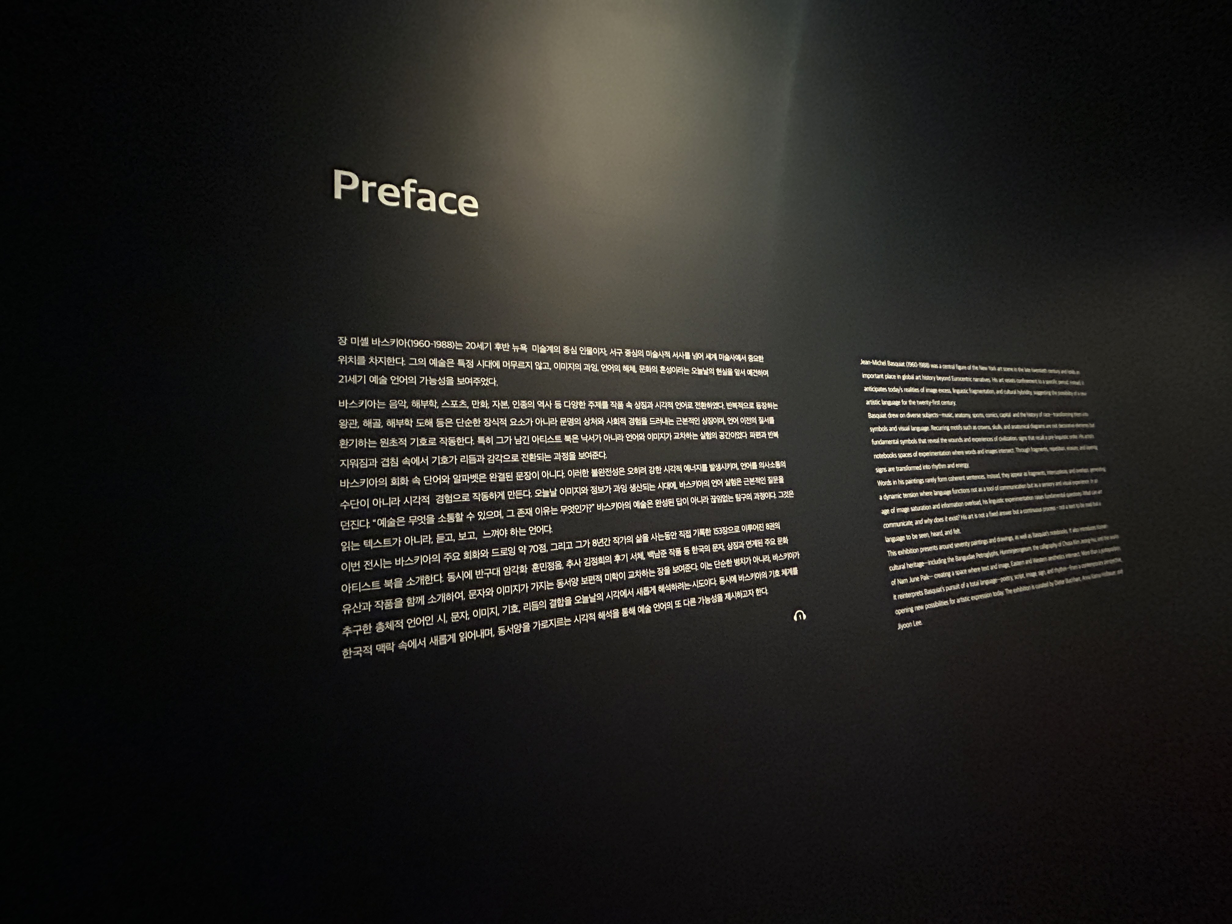 장 미셸 바스키아 Jean Michel Basquiat는 1960년 미국 뉴욕 브루클린에서 태어난 세계적인 미술가다. 그는 푸에르토리코와 아이티계 미국인으로서, 특히 어머니에게서 큰 영향을 받아 문화 예술적 재능을 키웠다. / 전시설명 중 /