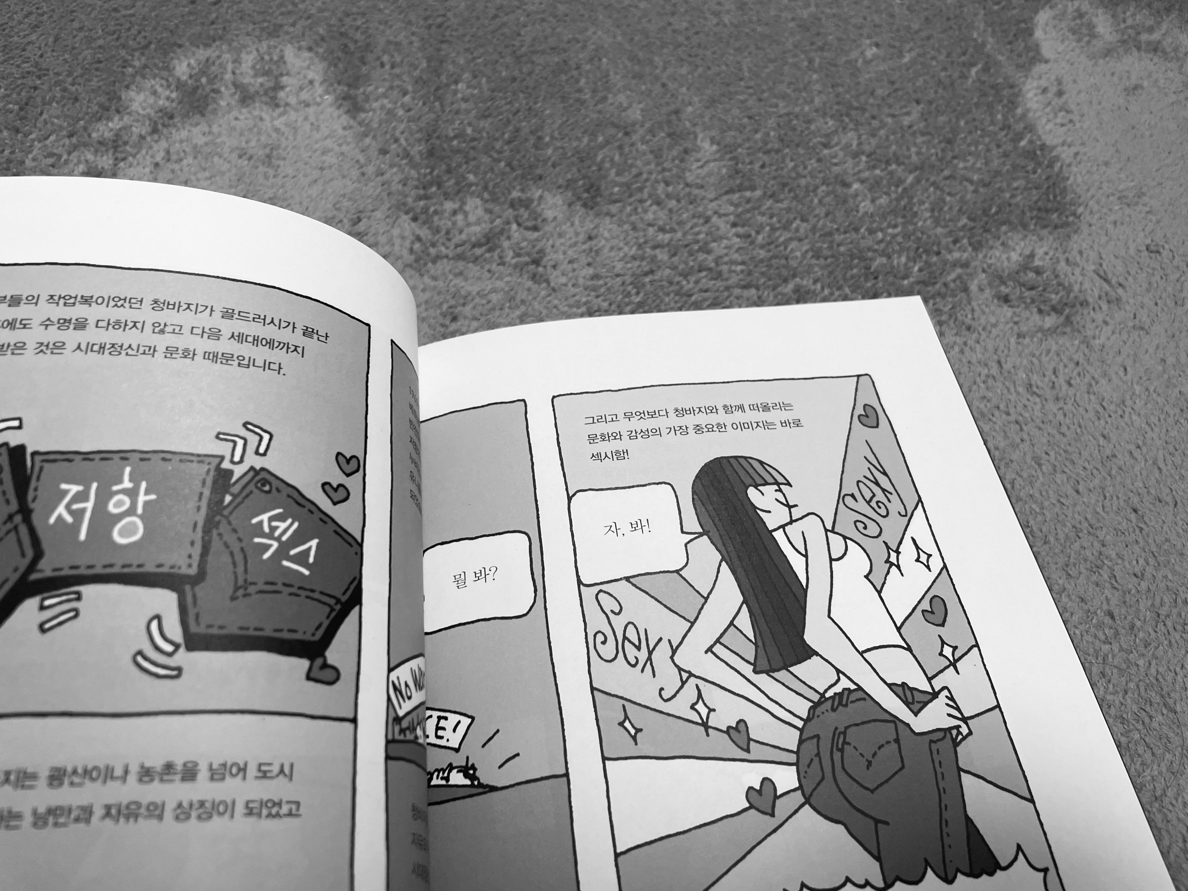 광부들의 작업복이었던 청바지가 골드러시가 끝난 이후에도 수명을 다하지 않고 다음 세대까지 사랑받은 것은 시대정신과 문화 때문입니다. 1950년대에 청바지는 광산이나 농촌을 넘어 도시 젊은이들이 추구하는 낭만과 자유의 상징이 되었고, 1960년대에는 베트남 전쟁에 반대하는 반전운동과 같은 저항의 현장을 누비는 사람들의 유니폼이 되었습니다. 청바지에 담긴 그런 자유와 저항의 시대정신은 현대로 오면서 성공한 여피들의 자기표현 방식으로 이어집니다. 그리고 무엇보다 청바지와 함께 떠올리는 문화와 감성의 가장 중요한 이미지는 바로 섹시함. / 76p