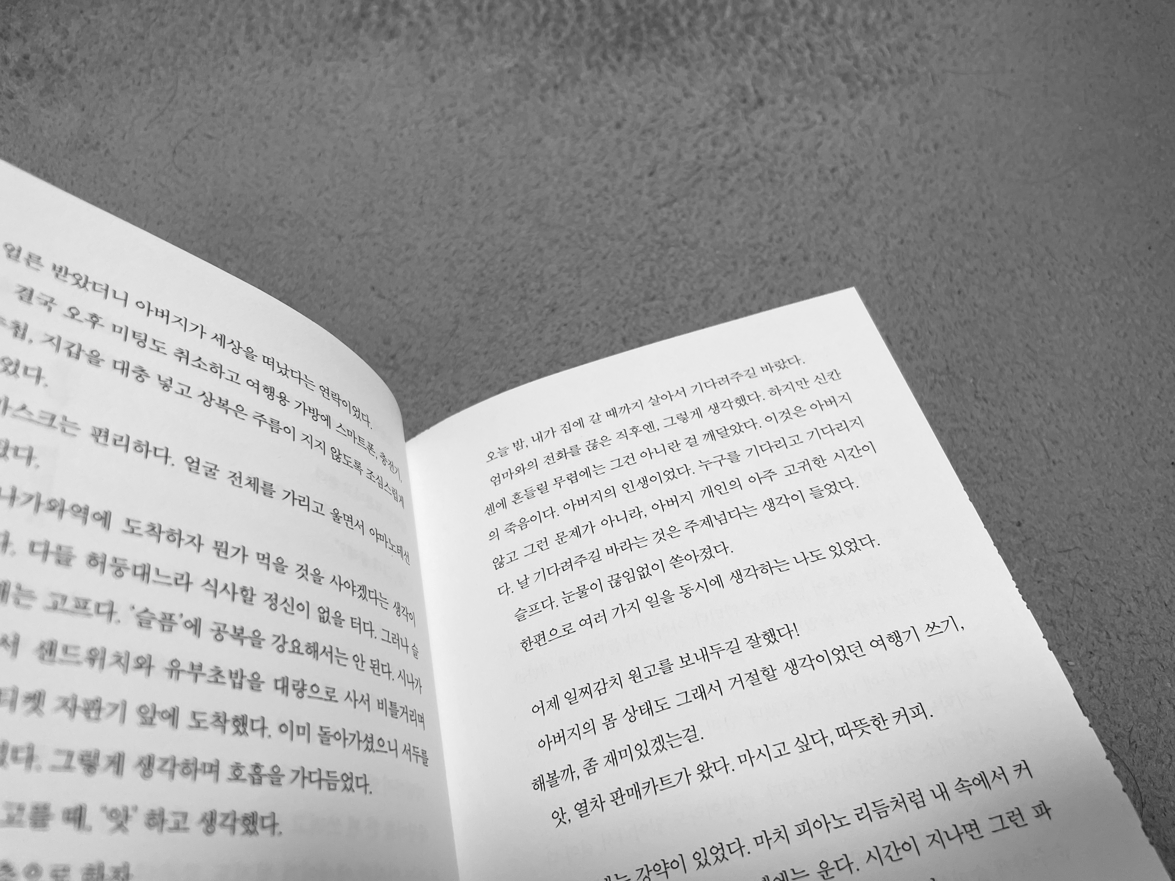 방금 전까지는 너무나 슬퍼서 아무것도 하고 싶지 않았던 장례식장에서 갑자기 배고픔을 느끼는 상황같은 것들. 이런 순간의 감정이 담긴 문장들도 너무 담담해서 잠깐 정신을 팔면 마치 처음부터 없었던 것처럼 지나가버린다.